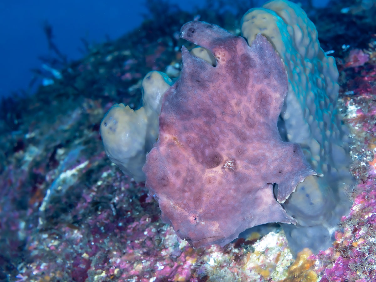 伊豆で見られるのは死滅回遊魚で幼魚がほとんど。 小さいサイズは判別が難しく、オオモンカエルアンコウの場合、 ドットなど言葉が飛び交うが知識も経験もないので聞き流してます。 2025年追記 温暖化の影響なのか、大瀬崎、伊豆大島では、 越冬した成魚が見られるようになった。
