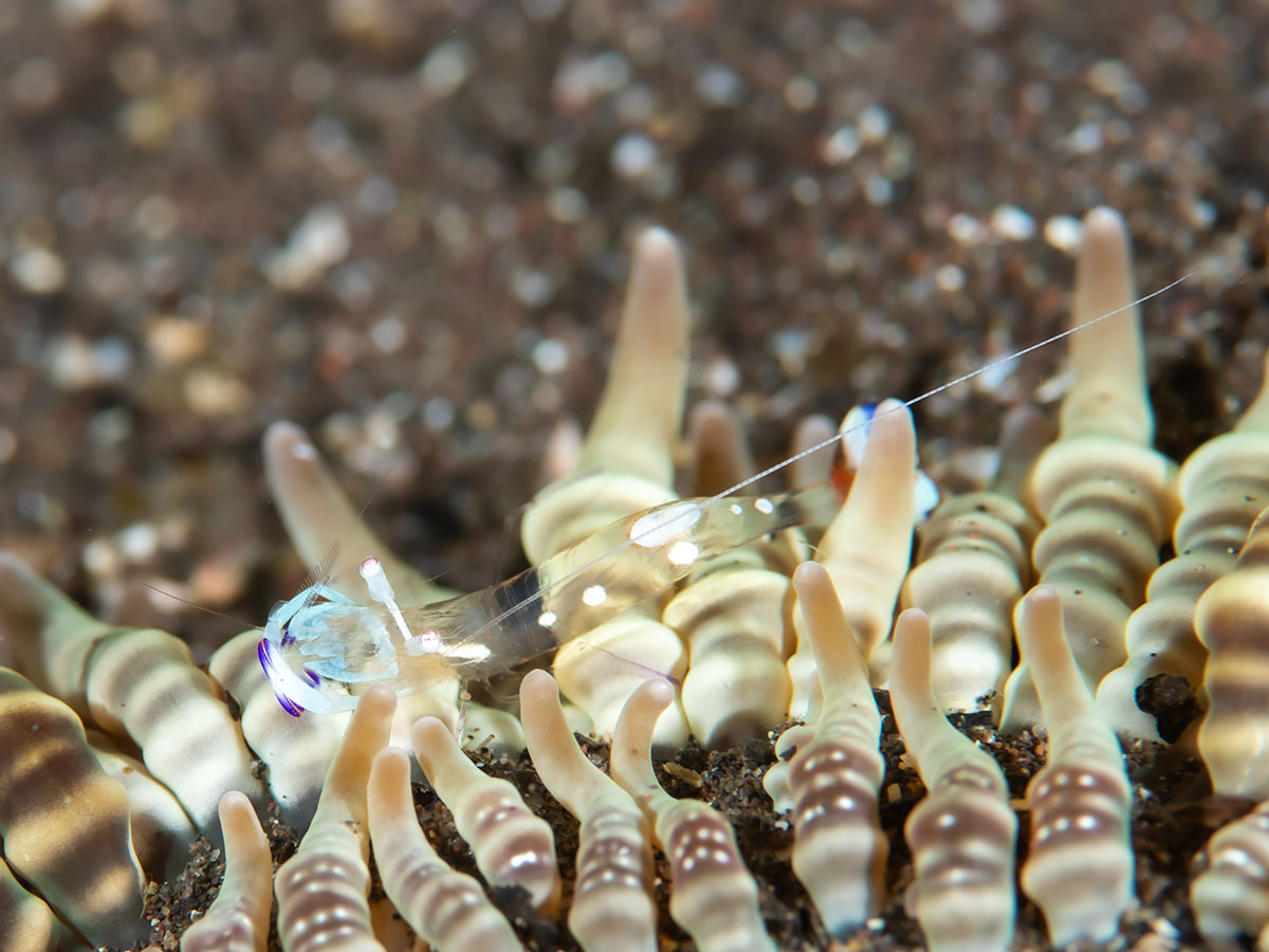 アヤトリカクレエビは撮影した時、1個体だけと思って撮影したけど、2個体目がたまたま写っていた、